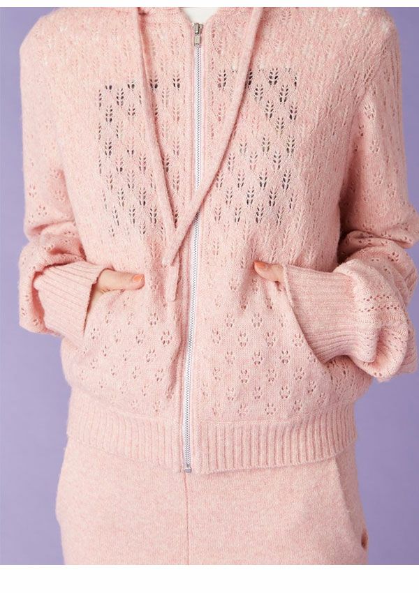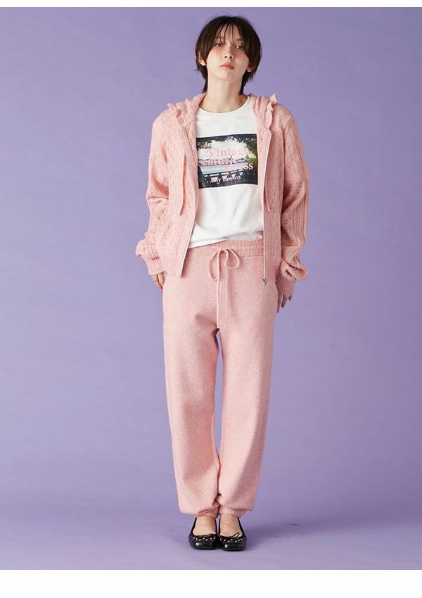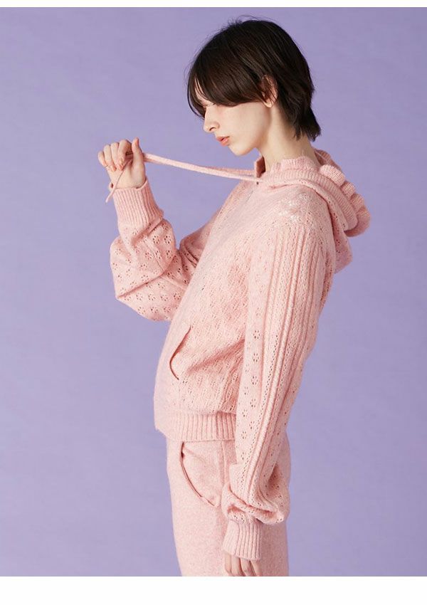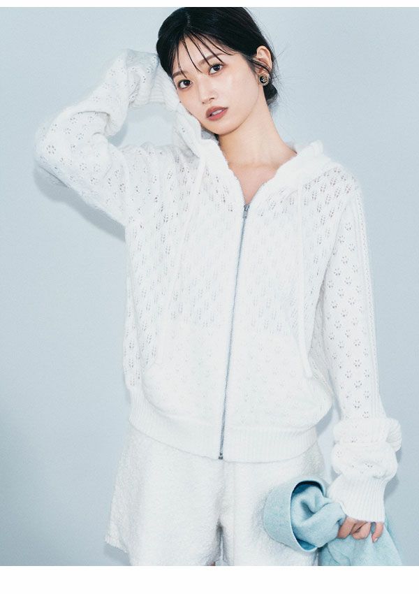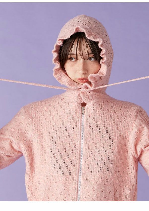 SALE!在庫限りの早い者勝ち 【SALE40%OFF】【即納】 リリー ブラウン LILY BROWN トップス 25秋冬 透かし編ニットパーカー ミドル丈 長袖 フーディー lwnt255139