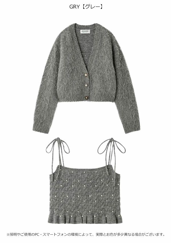 2025 Winter Collection 【SALE40%OFF】【即納】 リリー ブラウン LILY BROWN トップス 25秋冬 [L.B CANDY STOCK]アンサンブルビジューニット 長袖 ミドル丈 カーディガン ビスチェ セット lwnt255810