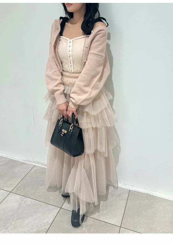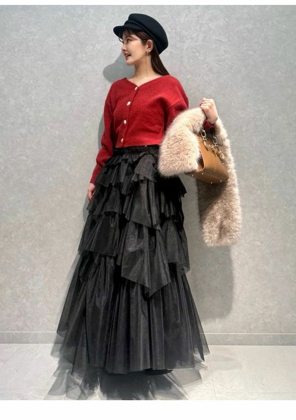 SALE!在庫限りの早い者勝ち 【SALE30%OFF】【即納】 フレイアイディー FRAY I.D ワンピース リブカーディガンティアードスカートセットアップ 長袖 ロング丈 fwno255089