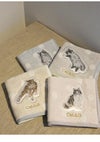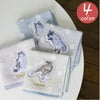 繊細なタッチの猫ちゃんたちのアップリケが付いた ふわふわ無撚糸のタオルハンカチ