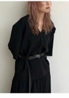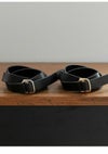 スタイリングに合わせやすい程良い太さで仕上げたバックルベルト。 お好みのサイズ感に調整でき、長めに設定しているので、あえてベルト先を垂らしたアレンジもおすすめ。 ミニマルながら、装いにさりげなくアクセントを添えてくれる一本です。 ベルト部分はブラックで、バックルはシルバーとゴールドの2色展開です。