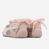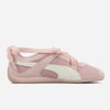 【PUMA×パワーパフガールズのコラボレーションモデル】 ベースには、モータースポーツシーンからインスピレーションを得た 「SPEEDCAT」を採用。 クラシックでシャープなシルエットに、 パワーパフガールズのガーリーでポップなエッセンスを落とし込み、 唯一無二のデザイン。 最大の特徴は、シューレースの代わりに採用されたリボンディテール。 足首で結ぶデザインが女性らしさを引き立て、 リボンがコーディネートに華やかさをプラスします。 さらに、甲部分にはハートモチーフのストラップを配置し、 遊び心とキャッチーさを演出。 スポーティなフォルムにガーリーな要素をミックスすることで、 ストリートにもフェミニンにも振れる絶妙なバランスに仕上げています。 デニムやカーゴで外したストリートスタイルはもちろん、 スカートやワンピースと合わせた甘辛ミックスにもおすすめ。 足元からスタイリングの完成度を引き上げてくれる、 デザイン性の高い一足です。