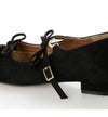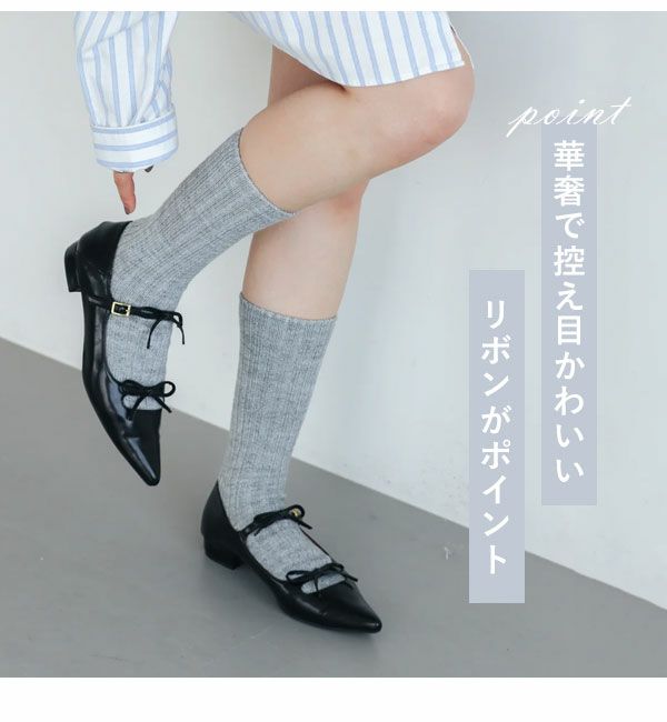 大人気のリボンパンプスが新しくなって登場。 あえて華奢で控えめなリボンのデザインにすることで、 カジュアルなスタイリングにも合わせやすいようにお作りいたしました。 素足はもちろんソックスと合わせていただくのもおすすめ。 甲部分のリボンは、フック式なので着用のたびにリボンを結ぶ必要がなく着脱しやすいのも◎