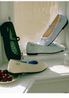 ミニマルながらもオシャレなシルエットで多くの人々に愛されたロックフィッシュのリボンフラットシューズのデザインに 縦目の独特なテクスチャ感の素材を使用し、フェミニンなムードを加えた製品です。 キルティングインソールで優れたフィット感と、ロックフィッシュならではの感性を盛り込んだデザインで、 季節問わずお楽しみいただける一足です。