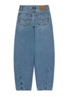 今っぽさとリラックス感、どっちも欲しい人へ。 ゆるっとカーブを描くバギーダッドバレルシルエットは、 今や定番のスタイル。 ミッドライズで腰まわりはすっきり、 程よいゆとりが脚のラインをきれいに見せてくれる、 ラフなのにこなれて見える万能デニム。 ほんのり色落ちを効かせたインディゴブルーは、立体感のある表情が魅力。 スウェットやロンTでカジュアルに、 コンパクトなトップスでトレンド感のある着こなしもお楽しみいただけます。