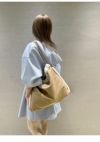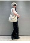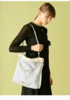 ファーとスエード素材でFURFURらしく仕上げた巾着型の大き目バッグ。 A4サイズが縦横どちらでも入るサイズ感となっており、 ペットボトルやタブレットなども入れて頂けるため日常使いしやすいアイテムとなっています。 チェーンや金具ロゴをあしらうことで華やかな印象に仕上げ細部にまでこだわりました。 ショルダーストラップが付いているため斜め掛けが出来るようになっており、 内側には鍵やポーチなどの小物を下げることが出来る仕様になっております。