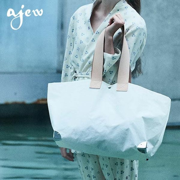 採用した素材は乾物の「昆布」のようなドライな質感を持つことから命名された「コンブナイロン」 ナイロン素材に特殊な加工を施すことによって、通常のナイロン素材よりも繊維の1本1本が膨らみ天然素材のような風合いに。 さらに生地が自立するほどの硬さを持ちながら、ナイロン素材特有のしなやかさも持ち合わせています。 またBAGにとって欠かせない要素である「軽さ」も実現。 軽量でありながらも雨や汗にも強い耐久性と撥水性という機能に加え、 キャンバスの様な独自のドライ感、コンパクト感があります。 折りたたんでもシワが気になりにくく、旅行や出張にも便利。 型崩れもせず撥水もあるので普段使いにもオススメです。 保管袋付き。