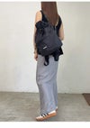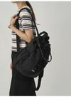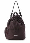 巾着のシルエットが女性らしいくマルチユースできるバックは、3WAYに変形可能。 リュックサックとemmiらしいコードのショルダーハンドルで肩掛けのバックとして。 サイクリングやウォーキングを楽しむアクティブなスタイルには肩紐を1本収納して 斜め掛けBAGへも変身可能。 サイドにはボトルが入るドリンクホルダー付きで表面のキャッチーなファスナーディテールもポイントです。 ■撥水加工 ■リサイクルナイロン使用
