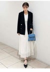 【ウォッシャブル】【本格的なディテールが光るダブルスリットジャケットで端正に】 リサイクルポリエステル素材を使用した、FRAY I.D定番のテーラードジャケット。 シンプルでありながらも、左襟のボタンホールや、バックスタイルのダブルベンツ、本開きの袖口など、本格的なディテールを効かせて、オーセンティックな1枚にお作りしました。 長く愛用できるジャストサイズのシルエットもこだわりのひとつです。 華やかさを添えるメタルボタンは赤みを控えた上品なゴールドにしてリュクスに。 また、裏ネックラインにはFRAY I.Dのネームプレートを付けてアクセントを加えました。 ネットに入れてご自宅での洗濯が可能で、お手入れも簡単。