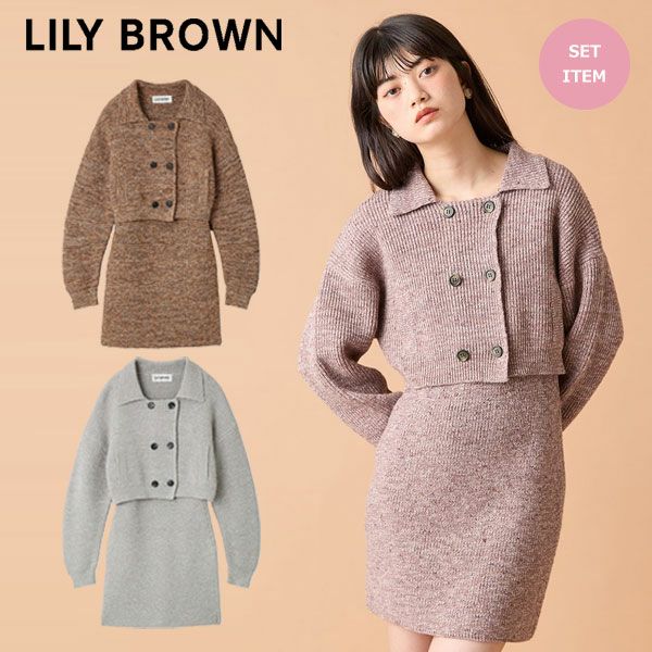 【新作10%OFF】【即納】リリー ブラウン LILY BROWN ワンピース 25秋冬 メランジニットジャケットセットミニワンピース ミニ丈 長袖 ノースリーブ 2WAY lwno254090