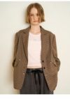 トレンドのオーバーシルエットのジャケットに、キャッチーなハートモチーフの小花柄刺繍が施されたアイテム。 刺繍はBOHOのテーマらしく、クロスステッチで表現されています。 綿麻調の裏地を使用し、さらっと羽織っていただけます。 色ごとに素材を変えており、トレンドのチェック柄、薄手の合皮、スエード調合皮を使用しました。 程よいオーバーシルエットになるよう薄い肩パッドを使用し、中にニットも着られるサイズ感でシルエットにもこだわりました。