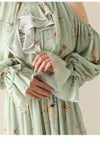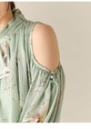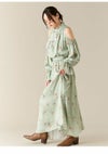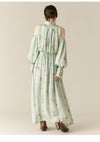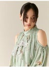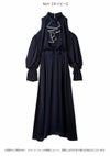 【肌魅せとクラシカルが共存するドレープワンピース】 シーズンムードを高めてくれる大胆な肌見せデザインに、 クラシカルなフリル衿を組み合わせた、 メリハリの効いたディテールが魅力のワンピース。 袖口のスリットはボタンで開き具合の調整が可能で、 シーンに応じて控えめにも演出できる嬉しい仕様です。 身体のラインを美しく見せるドレープ感や、 ウエストベルトに施されたタックがスタイルアップを後押し。 ベルト後ろ側にはゴムを入れており、 幅広い体型にフィットする着心地の良さも魅力です。 【Fabric】 落ち感のあるしなやかな素材を使用し、動くたびに上品に揺れるドレープを演出。 ややマットな質感で肌なじみがよく、 シーンを選ばず着用いただける一着に仕上がっています。