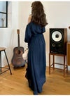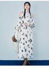 0【S-M】着丈124.5cm バスト99cm 袖丈45cm 肩幅27cm 前下がり7.8cm ウエスト63cm 裾幅114.5cm 1【M-L】着丈128.5cm バスト102cm 袖丈46.5cm 肩幅28cm 前下がり8cm ウエスト66cm 裾幅118cm ※ブランド公式表記
