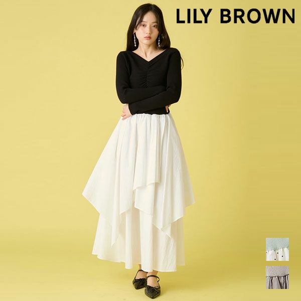 - 【新作10%OFF】【即納】リリー ブラウン LILY BROWN ワンピース 26春夏 ニットドッキングワンピース 長袖 マキシ丈 フレア lwno261060