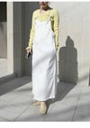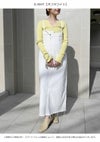 [S]着丈105cm(肩紐下)身幅50cm ヒップ110cm 裾幅64cm スリット丈28cm [L]着丈116cm(肩紐下)身幅50cm ヒップ113cm 裾幅64cm スリット丈38cm ※実寸値のため多少の誤差はご容赦ください