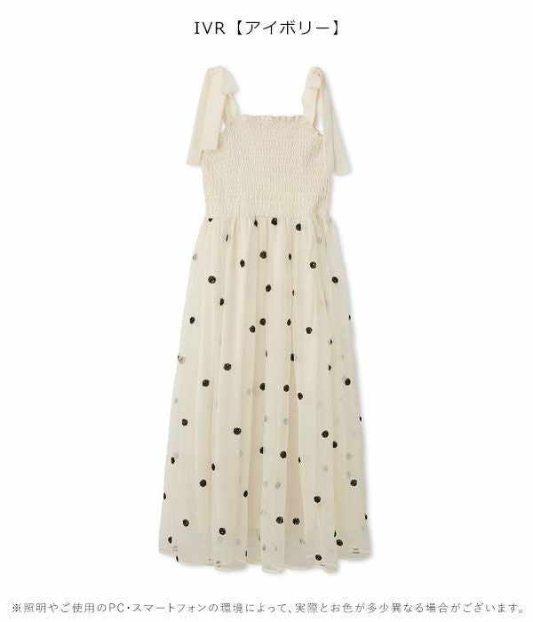 他の画像を見る 2025 Spring Summer Collection 【SALE30%OFF】【即納】ファーファー FURFUR ワンピース 25春夏 ドットスパンコール刺繍ワンピース ドレス ロング丈 キャミソール rwfo252064 30%OFF 即納 ポイント5倍 ¥ 23,100 ¥ 16,170 税込 カートに入れる お気に入りに登録する