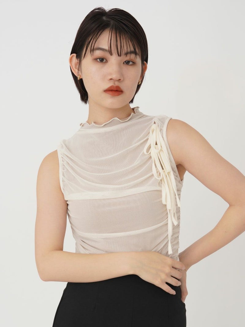 - 【SALE60%OFF】 【即納】 エギュゼ iGUISER トップス ribbon tulle tops (white) リボンチュールトップス ノースリーブ ミドル丈 ig-001