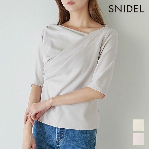 - 【SALE50%OFF】【即納】 スナイデル SNIDEL トップス 25秋冬 ワンショルダードレープカットソー ミドル丈 半袖 五分丈 swct254252