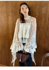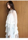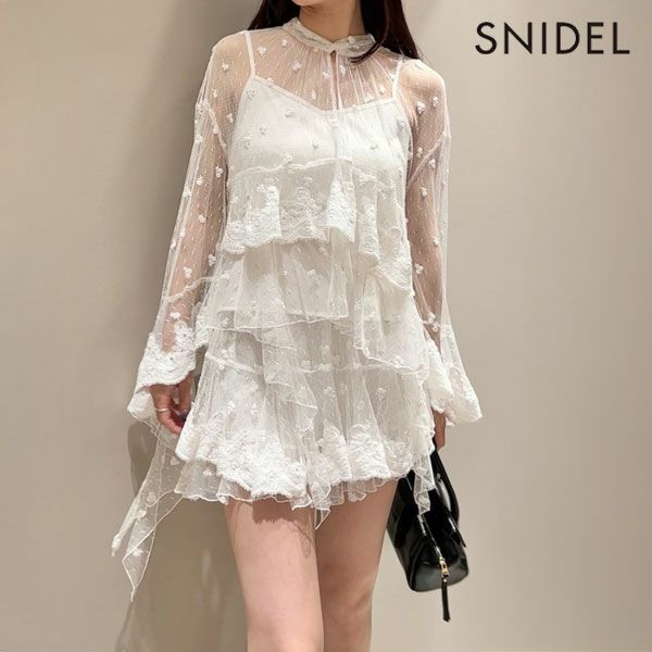 【SALE50%OFF】【即納】 スナイデル SNIDEL トップス 25秋冬 チュールエンブロイダリーレースブラウス ミドル丈 長袖 シアー 透け感 swfb255147