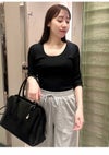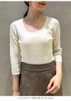 【SALE50%OFF】【即納】 スナイデル SNIDEL トップス 25秋冬 Uネックシンプルリブニットプルオーバー Tシャツ 半袖 長袖 タイト 7分袖 無地 swnt254249