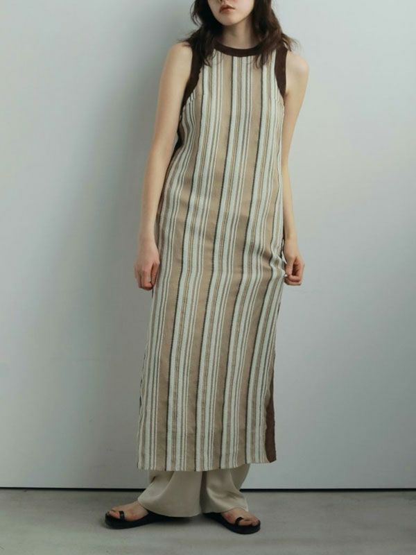 【FINAL SALE60%OFF】【即納】アンヌーク anuke 2025FallWinter ワンピース Sheer Stripe Onepiece シアーストライプワンピース ロング丈 ノースリーブ 25秋冬 62520317