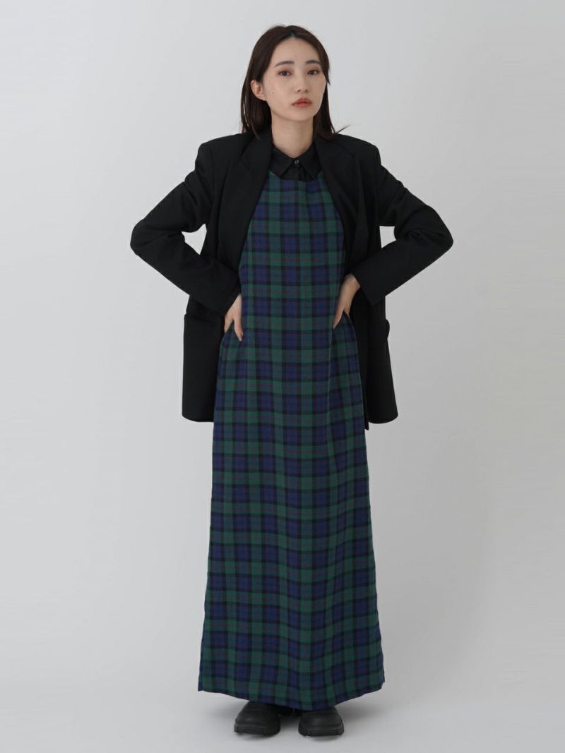 【SALE60%OFF】【即納】 エギュゼ iGUISER ワンピース 24秋冬 check pattern dress チェックパターンドレス ロング丈 ノースリーブ チェック ig-ig036