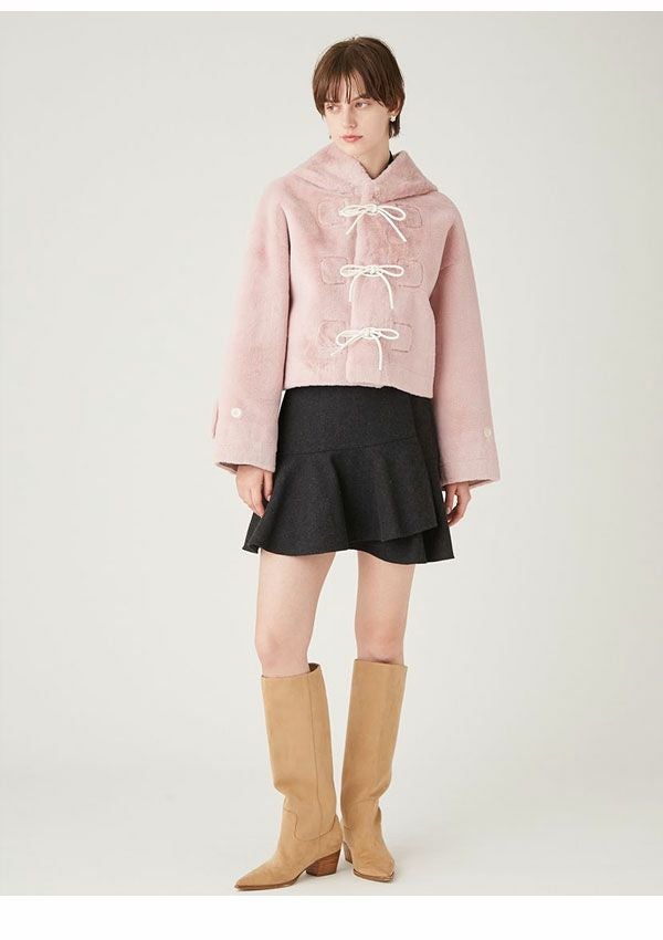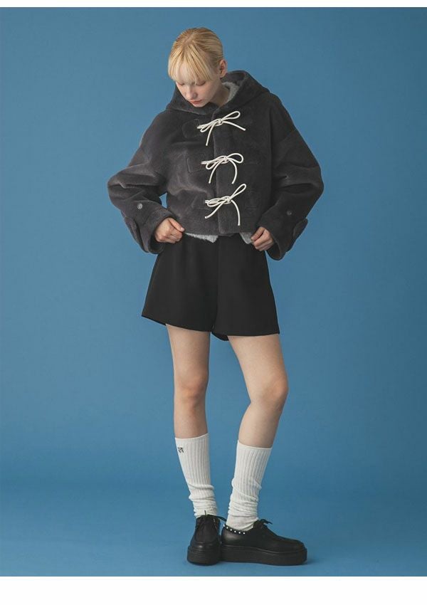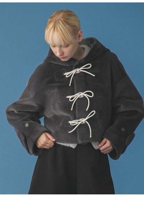 SALE!在庫限りの早い者勝ち 【SALE20%OFF】【即納】ファーファー FURFUR アウター 25秋冬 リボンショートダッフルコート 長袖 ショート丈 リボン ダッフル rwfj255003