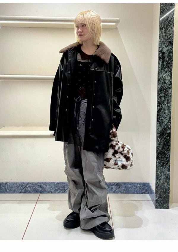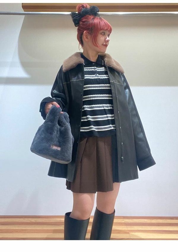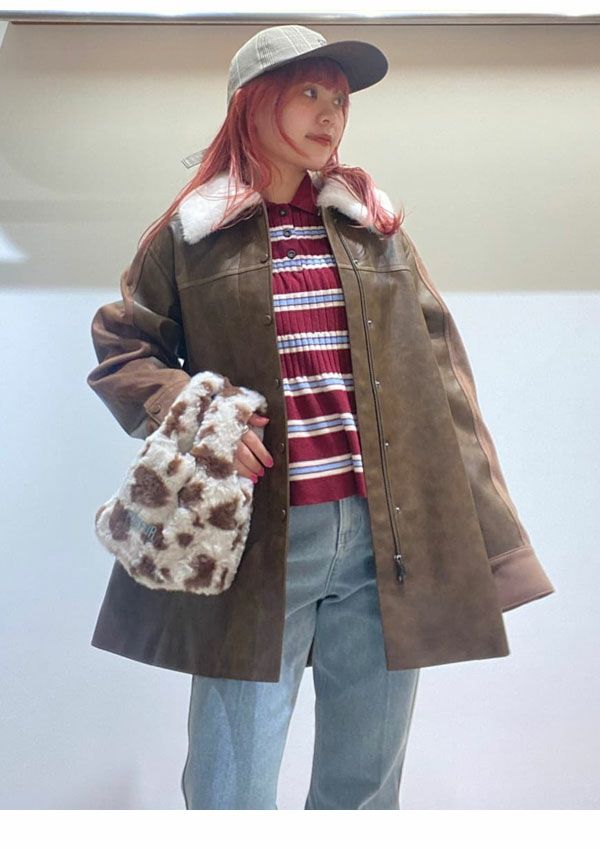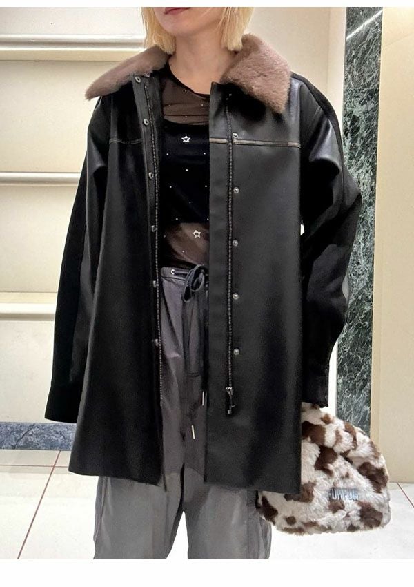 SALE!在庫限りの早い者勝ち 【SALE30%OFF】【即納】ファーファー FURFUR アウター 25秋冬 2WAYエコファーカラーシャツコート 長袖 レザージャケット rwfj255004