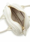 【カーヴィーボストンバッグを、ミニチュアに】 カーヴィーボストンバッグ(FWGB252309)をそのままミニサイズにした、遊び心あるバッグです。 カーヴィーボストンバッグにチャームのようにつけてセット使いするのもおすすめ。 トレンド感あふれるスタイルに。 リップやイヤホンなど、小物が入るサイズ感。 さらに、取り外し可能なショルダーストラップも付いています。 ダブルジップで使いやすいデザインです。 カラーバリエーションは、カーヴィーボストンバッグと同じ3色。 エレガントなIVR、優しい印象のCML、シックで使いやすいBLKで展開しています。