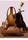 トレンド感のある横長フォルムがポイントのボストンバッグ。 ハンドルステッチやハンドルバインダー、ファスナー引手にハートモチーフを入れてFURFURらしい遊び心を効かせています。 見た目以上の収納力と使い勝手の良さがポイントです。