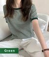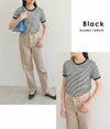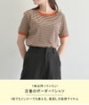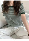 5. 【売り尽くしセール】【即納】 DHSELECT ボーダーTシャツ レディース 半袖 ミドル丈 カジュアル シンプル リンガーT 細ボーダー 韓国ファッション クルーネック パイピング double-0011