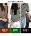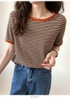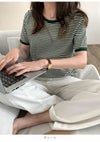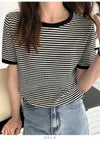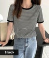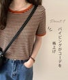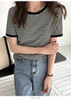 3. 【売り尽くしセール】【即納】 DHSELECT ボーダーTシャツ レディース 半袖 ミドル丈 カジュアル シンプル リンガーT 細ボーダー 韓国ファッション クルーネック パイピング double-0011