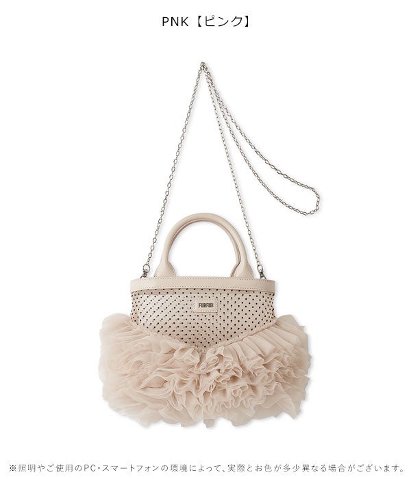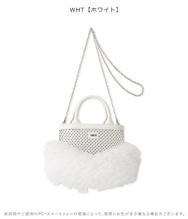 他の画像を見る 【先行10%OFF】ファーファー FURFUR バッグ 26春夏 チュチュバッグ 4月下旬~5月中旬予約 ハンド ショルダー フリル チュール チェーン ギフト rwgb262501 予約販売 ポイント5倍 ¥ 13,200 ¥ 11,880 税込 販売開始前です。 販売期間 2026/04/20 12:00 〜 2026/04/30 23:59 カートに入れる お気に入りに登録する