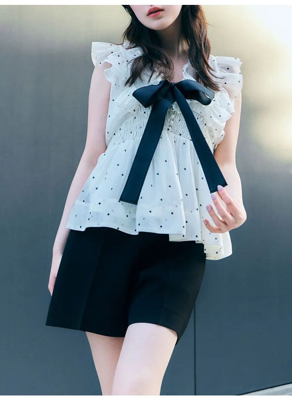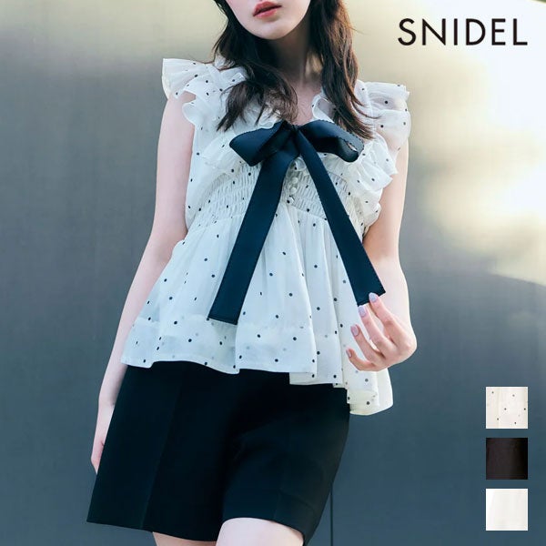 他の画像を見る 2026 Summer Collection スナイデル SNIDEL トップス 26春夏 シアーペプラムリボンブラウス 5月中旬~7月上旬予約 ノースリーブ ドット 柄 Vネック swfb262087 予約販売 ポイント5倍 ¥ 14,960 ¥ 14,960 税込 販売開始前です。 販売期間 2026/04/27 12:00 〜 2026/05/31 23:59 カートに入れる お気に入りに登録する