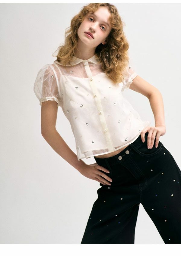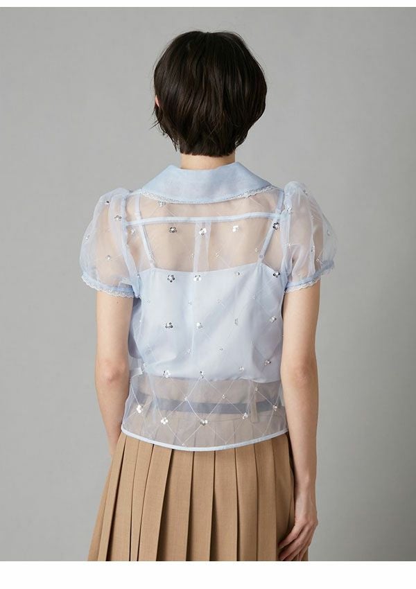 他の画像を見る 2026 Spring Collection 【新作10%OFF】 リリー ブラウン LILY BROWN トップス 26春夏 [L.B CANDY STOCK]ラウンドカラービジューブラウス 3月上旬~下旬予約 半袖 シースルー lwft261801 10%OFF 予約販売 ポイント5倍 ¥ 21,450 ¥ 19,305 税込 カートに入れる お気に入りに登録する