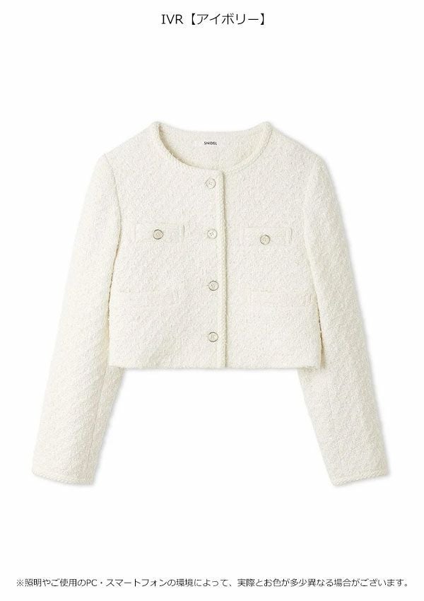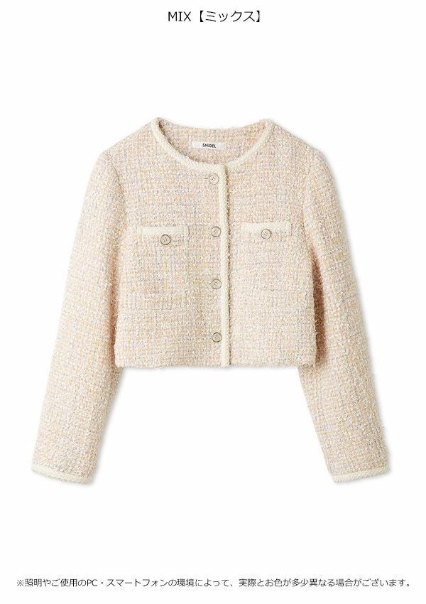 他の画像を見る \新作10%OFFキャンペーン/ 【新作10%OFF】【即納】 スナイデル SNIDEL アウター 26春夏 ツイードジャケット 長袖 ショート丈 ツイード swfs261044 swfj261033 10%OFF 即納 ポイント5倍 ¥ 23,980 ¥ 21,582 税込 カートに入れる お気に入りに登録する