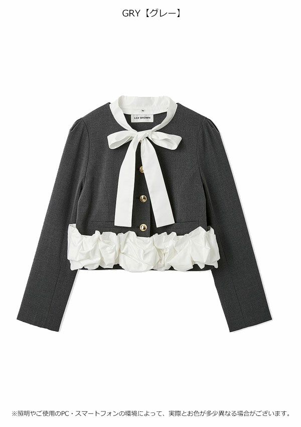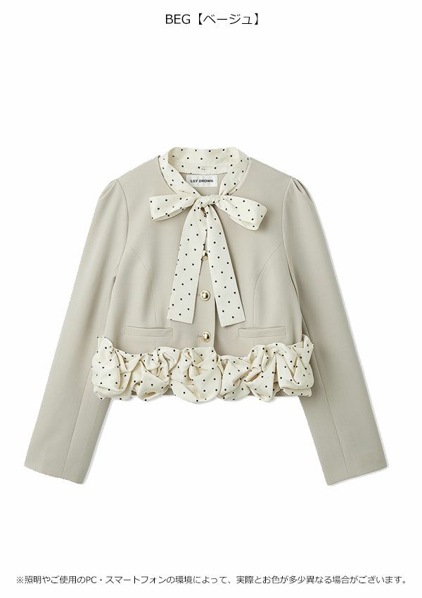 2026 Spring Collection 【新作10%OFF】 リリー ブラウン LILY BROWN アウター 26春夏 3wayバブルヘムボウタイジャケット 3月上旬~下旬予約 ミドル丈 長袖 ノーカラー 2WAY lwfj261162