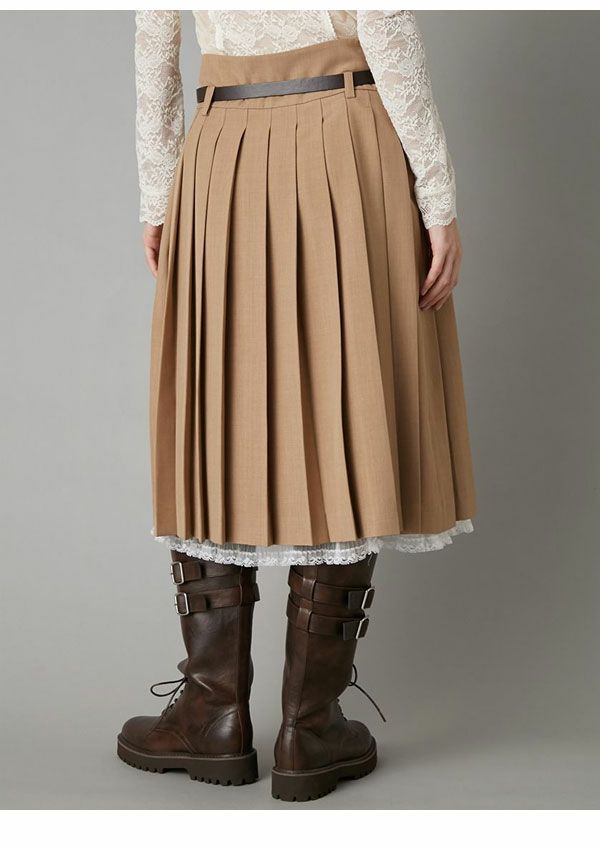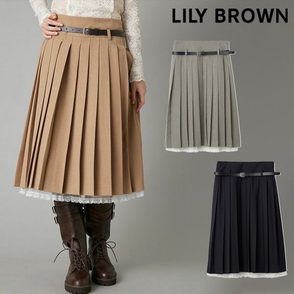 2026 Spring Collection 【新作10%OFF】 リリー ブラウン LILY BROWN ボトムス 26春夏 ベルト付きレースプリーツスカート 3月中旬~4月上旬予約 ミドル丈 プリーツ ベルト lwfs261167