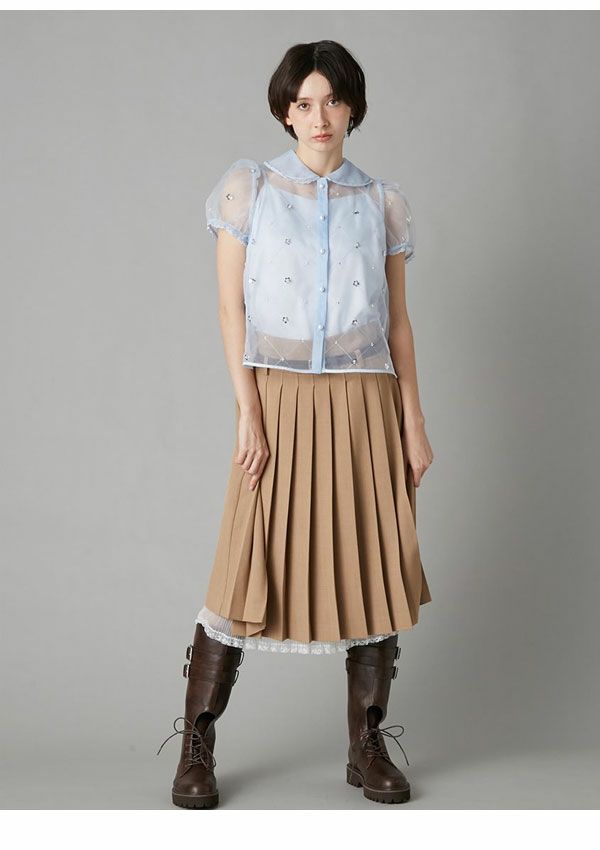 2026 Spring Collection 【新作10%OFF】 リリー ブラウン LILY BROWN トップス 26春夏 [L.B CANDY STOCK]ラウンドカラービジューブラウス 3月上旬~下旬予約 半袖 シースルー lwft261801