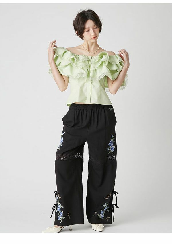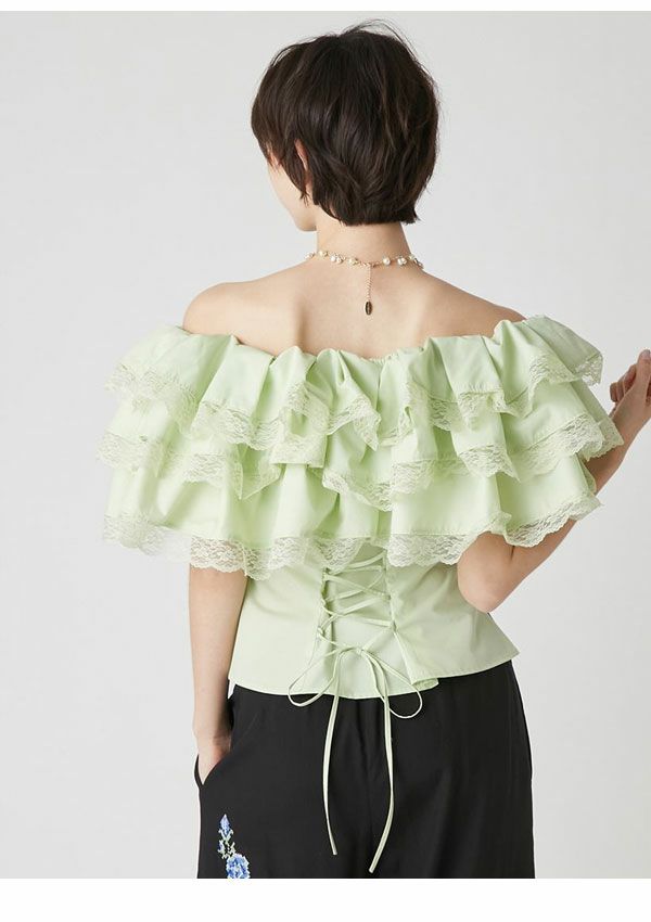 2026 Spring Collection 【新作10%OFF】 リリー ブラウン LILY BROWN トップス 26春夏 ボリュームフリルオフショル2wayブラウス 4月上旬~下旬予約 半袖 ミドル丈 レース lwft262005