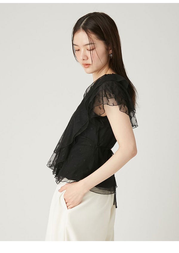 他の画像を見る 2026 Summer Collection フレイアイディー FRAY I.D トップス 26春夏 ラッフルチュールレースブラウス 5月上旬~下旬予約 半袖ミドル丈 柄 インナー付き fwfb262099 予約販売 ポイント5倍 ¥ 17,930 ¥ 17,930 税込 カートに入れる お気に入りに登録する