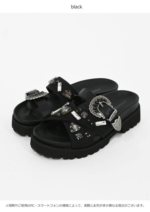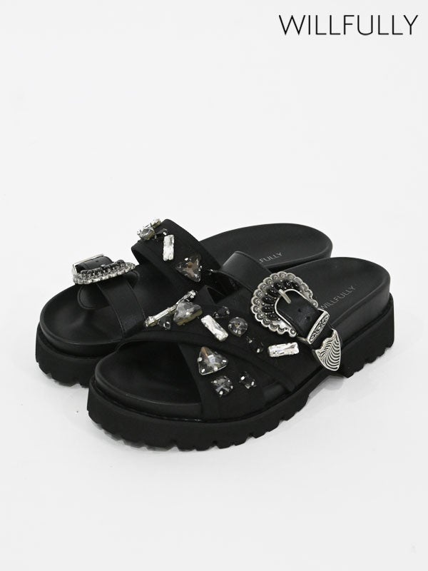 他の画像を見る 【即納】ウィルフリー WILLFULLY シューズ ビジューサンダル 靴 アシンメトリーデザイン 厚底 2611-sh-01 即納 ポイント5倍 ¥ 21,670 ¥ 21,670 税込 カートに入れる お気に入りに登録する