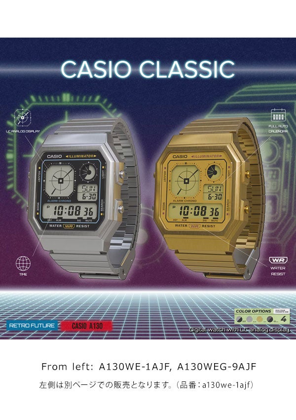 他の画像を見る LCアナログを採用した、ガジェットライクなデジタルウオッチです。 【即納】【国内正規品】カシオ CASIO CLASSIC A130WEGG-1AJF 腕時計 ウォッチ 時計 小物 a130weg-9ajf a130wegg-1ajf ¥ 11,000 ¥ 11,000 税込 カートに入れる お気に入りに登録する